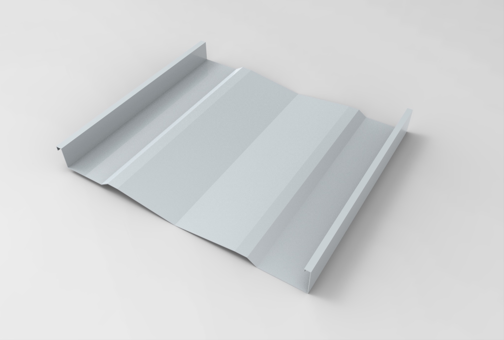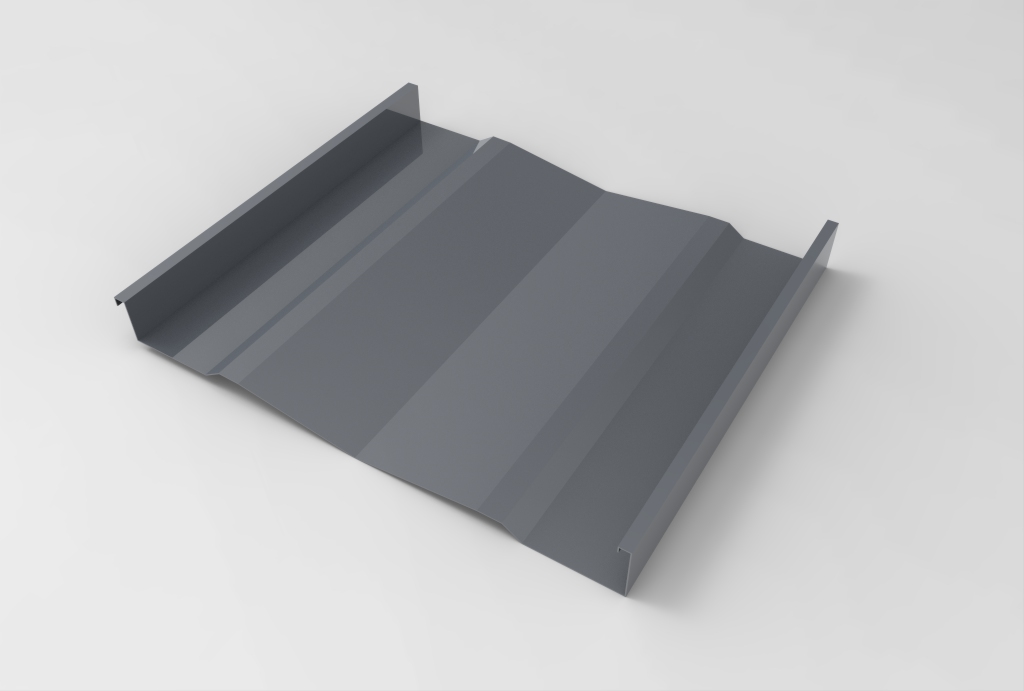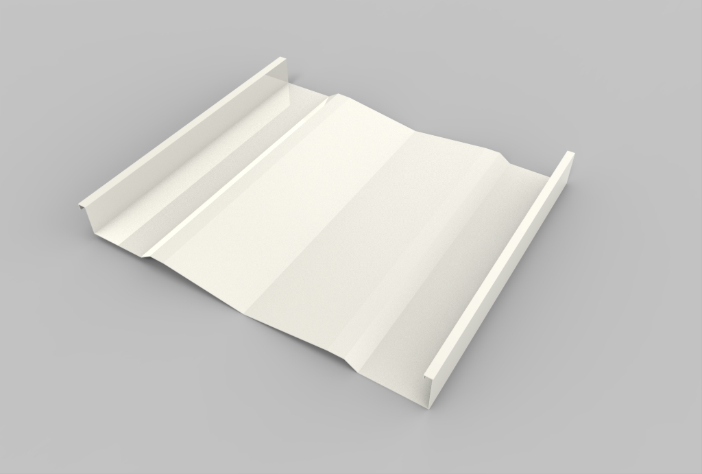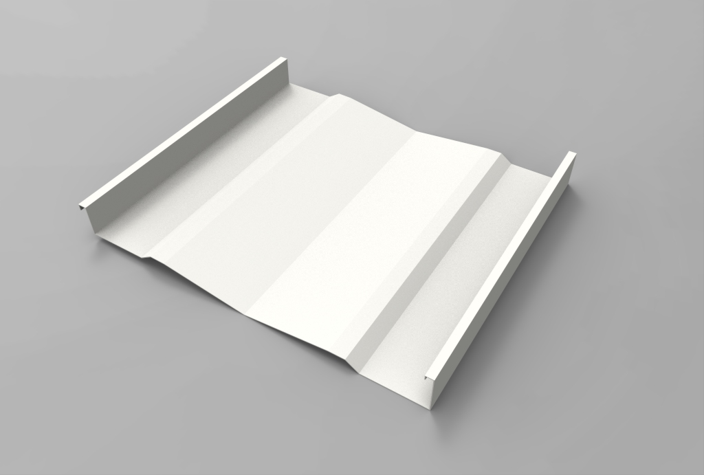 Panel continuo, diseñado para su aplicación en revestimientos y cielos. Está constituido por una superficie de planos ligeramente oblicuos que le otorgan un interesante efecto de luz-sombra. Sus bordes laterales están constituidos por dos nervios tipo emballetado rigidizante. No tiene fijaciones a la vista. Puede colocarse en disposición vertical, horizontal o diagonal. El panel es fabricado en largos continuos, conforme a la longitud especificada por proyecto. Largo máximo 12 metros.