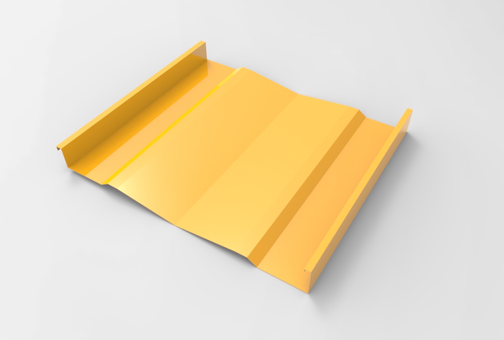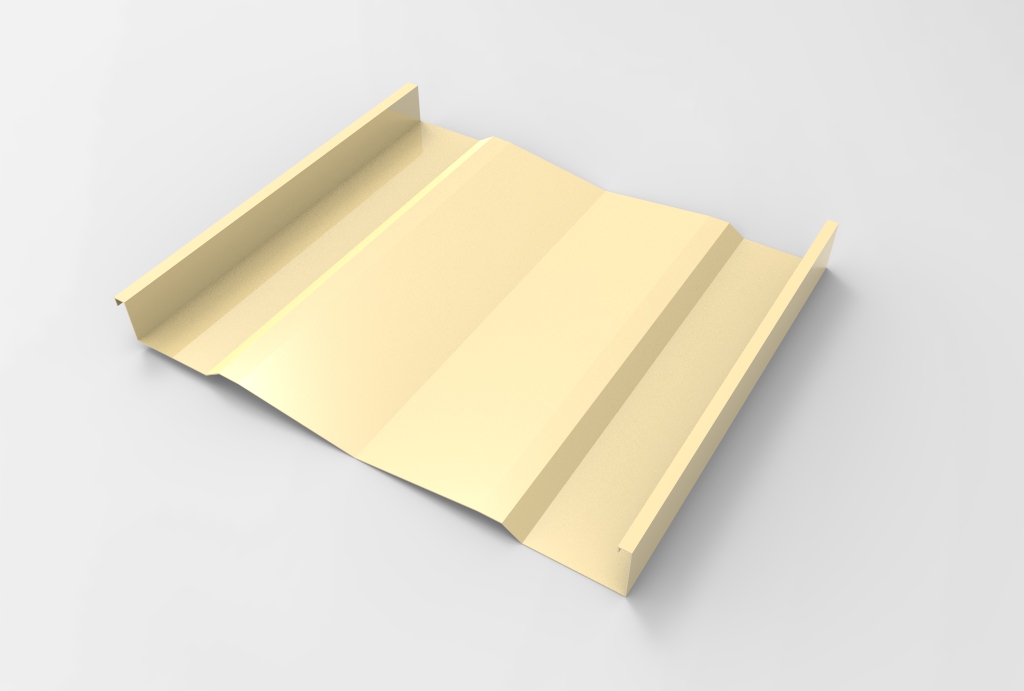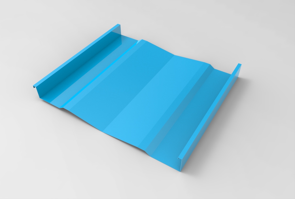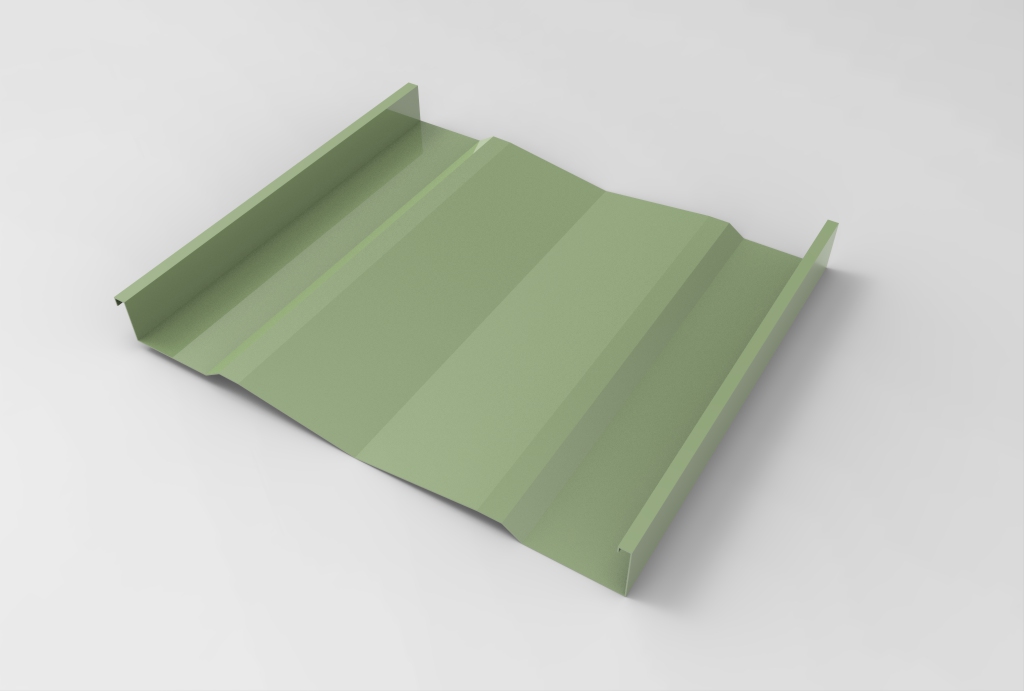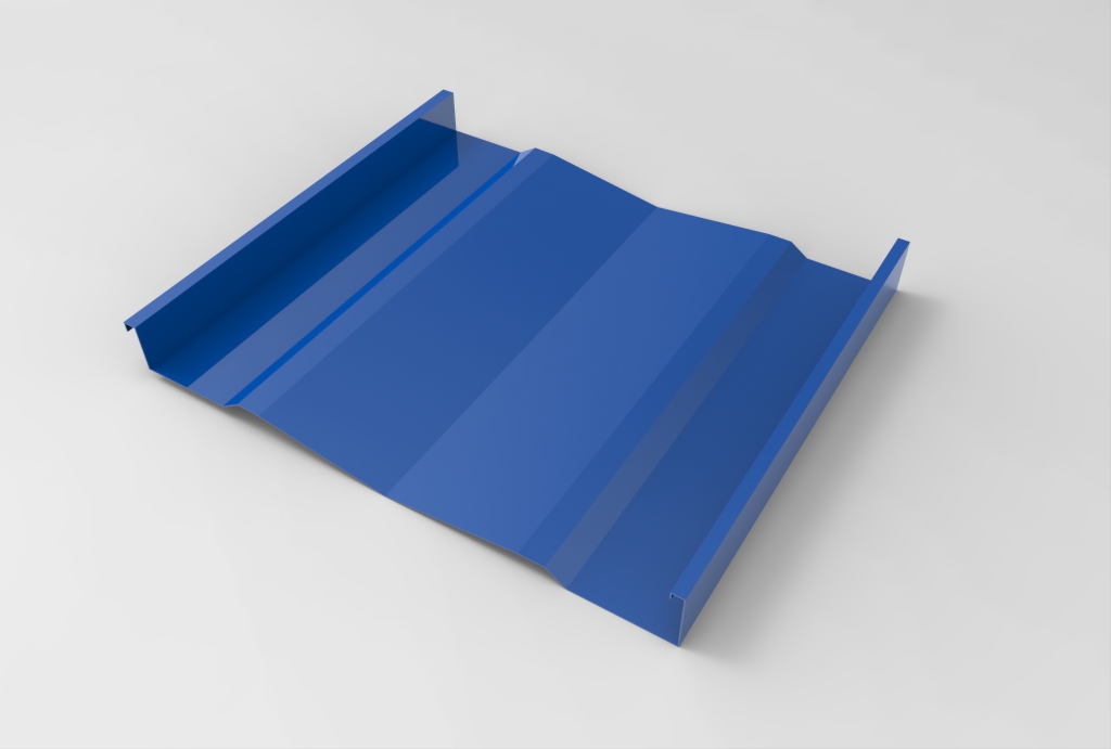 Panel continuo, diseñado para su aplicación en revestimientos y cielos. Está constituido por una superficie de planos ligeramente oblicuos que le otorgan un interesante efecto de luz-sombra. Sus bordes laterales están constituidos por dos nervios tipo emballetado rigidizante. No tiene fijaciones a la vista. Puede colocarse en disposición vertical, horizontal o diagonal. El panel es fabricado en largos continuos, conforme a la longitud especificada por proyecto. Largo máximo 12 metros.