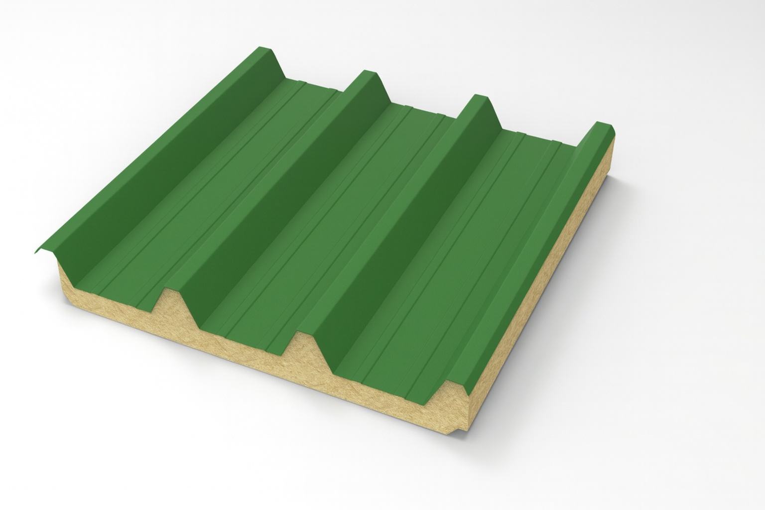 Panel aislado de acero estructural de cuatro trapecios, construido por dos láminas de acero con núcleo de poliestireno expandido, adherido a ambas laminas metálicas. Panel MD 4 Cover Poliestireno 1000 Terminación en Prepintado y Zinc-Alum. Panel MD 4 Cover Poliestireno 1000 Traslúcidas FRP disponible con la misma geometría para solucionar la luminosidad requerida del proyecto. Alternativa cara inferior polipropileno blanco o foil aluminio.