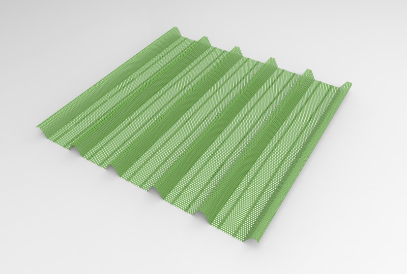 La aplicación de Paneles Perforados de línea continua, permite realizar en todas sus geometrías variedad de perforaciones en sus productos industriales como de vivienda, entregando un atractivo visual de revestimiento exterior e interior. Nuestros Paneles Perforados son fabricados según longitudes y necesidades de cada cliente, aportando menos cantidad de traslapos y obteniendo mejor iluminación, sombras y ventilaciones según cada proyecto.